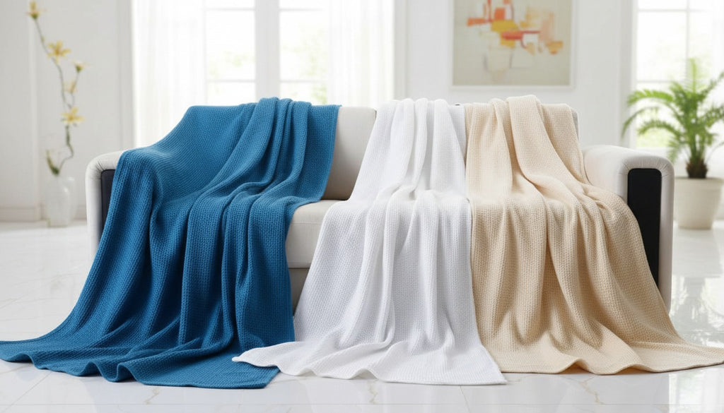 Enjoy comfort every day with our cotton waffle blanket. It is made from 100% cotton that feels soft and light. You can use it in both summer and winter.